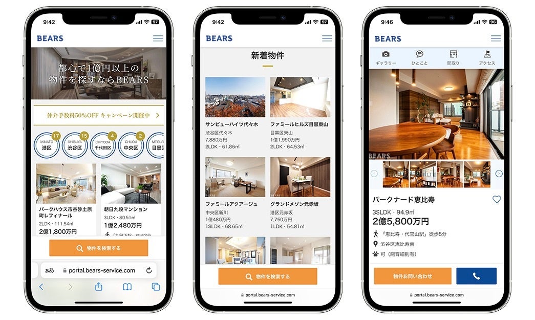 ・都心の1億円以上の物件紹介サイト『BEARS PORTAL』(https://portal.bears-service.com/)