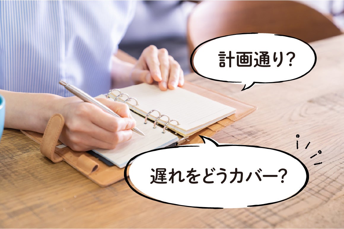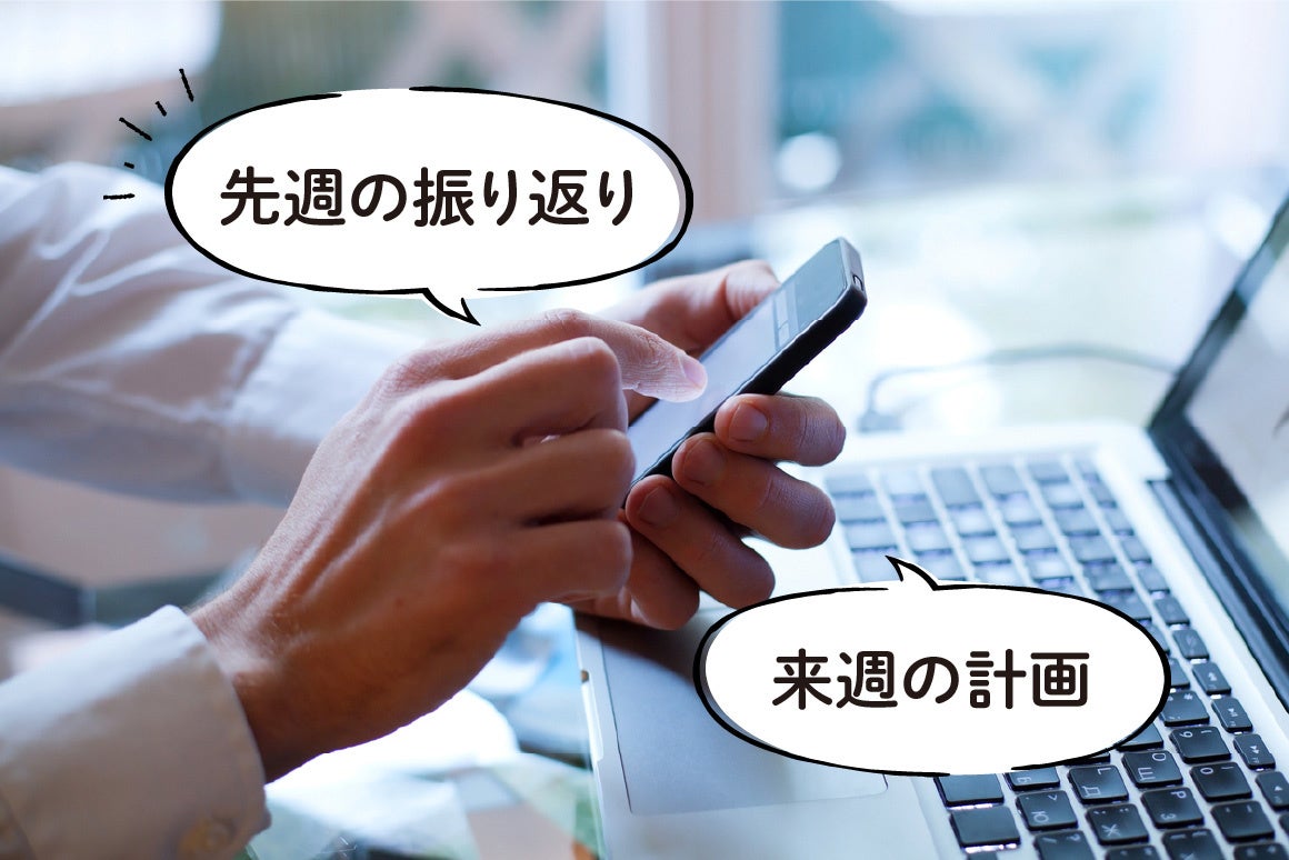 毎日の進捗報告とは別に、毎週の振り返りも実施していただきます。計画と照らし合わせてどんな1週間だったか、うまくいった点・いかなかった点を客観的に振り返りコーチに共有します。うまくいかなかった点については次週以降どのように変えていくか、コーチとチャットでやりとりをして次週の計画に反映していきます。