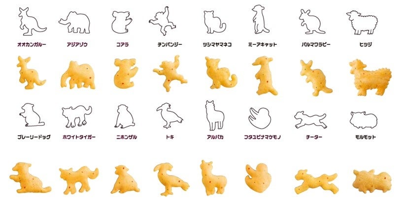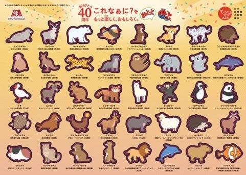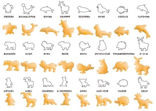 全国40か所の動物園・水族館にいるいきもの40種類を、おっとっとの菓子型にしました。何のいきものの菓子型なのか、食べながら予想したり、答え合わせをしたりして、是非お楽しみください。