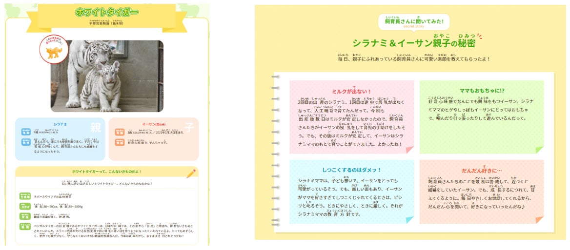 おっとっと40周年にちなみ、全国40か所の動物園・水族館から、40種類のいきものの親子を特設サイト上でご紹介。いきものの生態や雑学はもちろんのこと、その動物園・水族館にいる、いきもの親子の素顔や日常を、毎日親子にふれあう飼育員さんが特別に明かします。