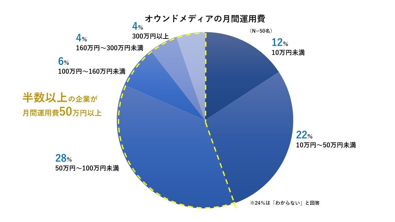 オウンドメディアの月間運用費は半数以上の企業が50万円以上