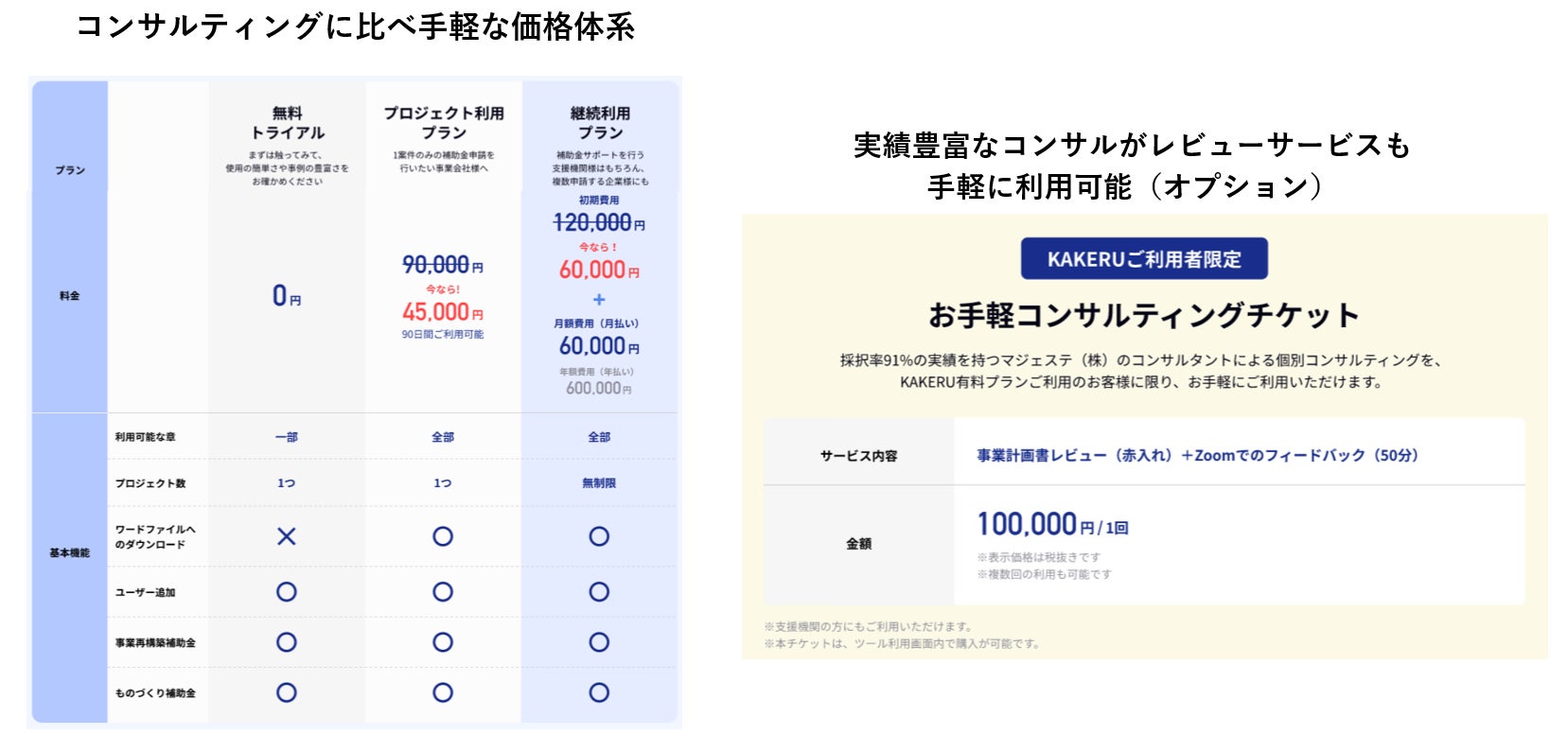 中小企業支援のマジェステ、成長投資向けの補助金申請に必要な事業計画をかんたん・高品質に作成できるクラウドサービス「KAKERU(カケル)」の提供開始