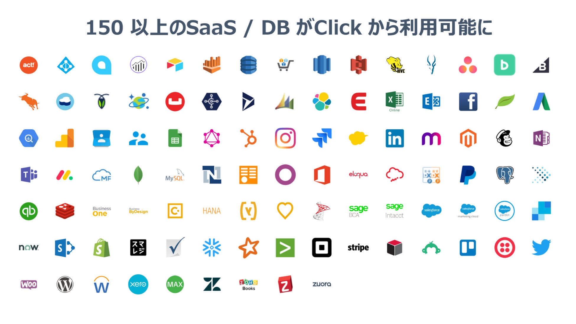 NoCode Japan株式会社(本社:東京都中央区、代表取締役社長:中川賢史朗、以下当社)とCData Software Japan 合同会社(本社:アメリカノースカロライナ州、日本オフィス:宮城県仙台市、代表社員 職務執行者:疋田 圭介、以下CData)は、ノーコードアプリ開発ツール『Click』と『CData Connect Cloud』の新たな製品連携を発表いたします。これにより、Salesforceやスプレッドシートを含む150以上のSaaS/DBにノーコードで連携することが可能となります。