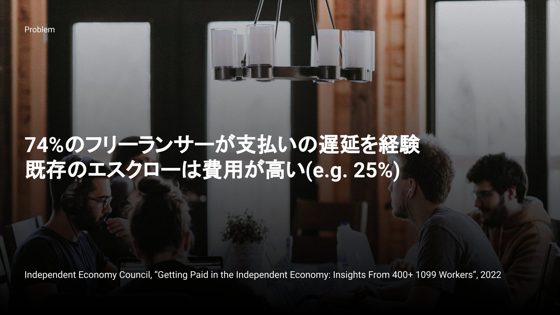 独立経済評議会によると、フリーランサーの74%が支払いの遅延を経験しています。しかし、中央集権的なエスクローサービスは高額であり、紛争解決の決定が公正であるとは限りません。例えば、F社のエスクローサービスの手数料は25%です。また、F社は企業からの収入に頼っているため、フリーランサーと企業との間の紛争解決の際には企業に偏った決定を下すという主張もあります。