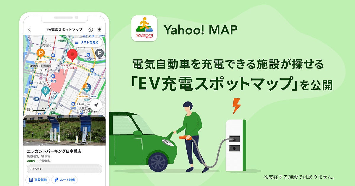Yahoo! MAP、電気自動車(EV)用の充電スポットの場所や充電料金などを確認できる「EV充電スポットマップ」機能を提供開始