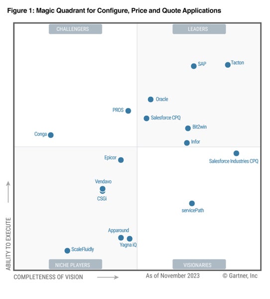 インフォアが2023年ガートナー・マジック・クアドラントのコンフィギュレーション、価格設定、見積もりアプリケーション・スイートのリーダーに選出