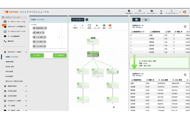 分析ツールnehanは、業務のボトルネックである前処理を効率化し、可視化につなげられるツールです。