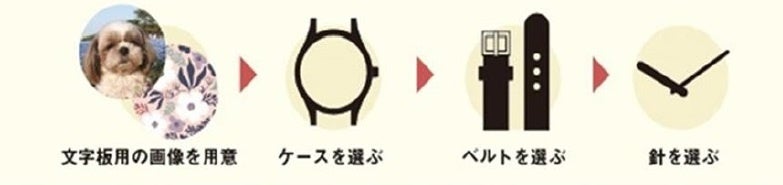 「時計工房 マイクリエーション(以下マイクリエーション)」は、ケースやベルト、針といったパーツを選ぶだけではなく、文字板にお気に入りの写真や自作のイラスト・グラフィック等を入れ、世界に一つだけの腕時計を作ることができるサービスです。