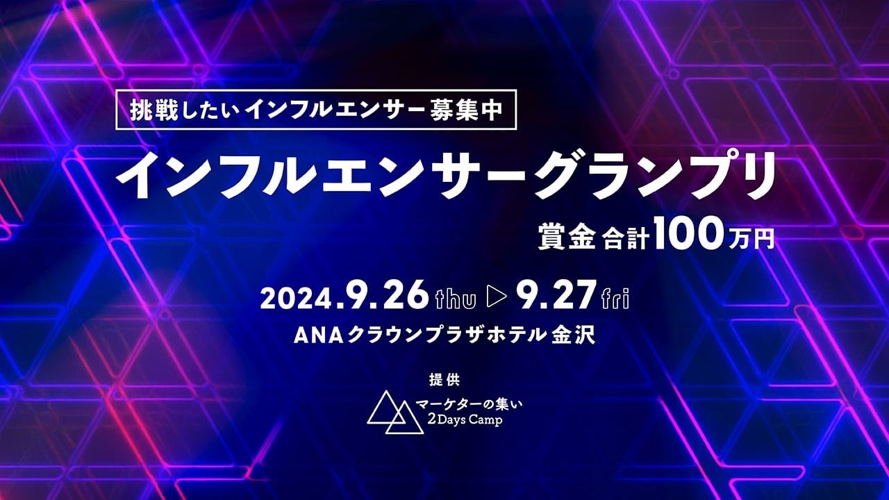 事業会社のマーケティングとマーケターのキャリアを支援するカラビナハート株式会社(中央区、代表取締役:森 洋平、以下カラビナハート)は、2024年9月26日(木)から9月27日(金)の2日間、第6回目となるトップマーケター向けイベント「マーケターの集い 2Days Camp」を金沢で初開催するに加え、「賞金合計100万円のインフルエンサー動画グランプリ」の追加開催を決定したことをお知らせいたします。