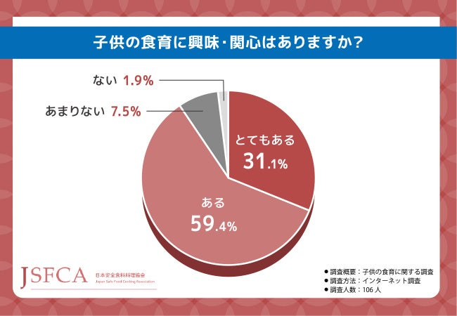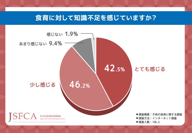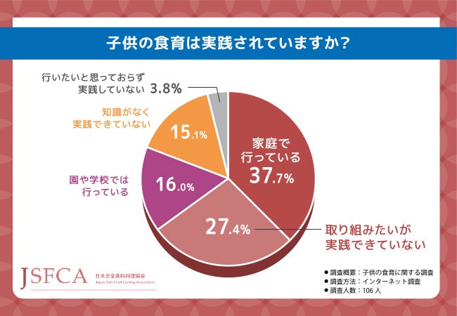 そこで今回、食育健康アドバイザー®資格認定試験(https://www.asc-jp.com/kenkousyoku/syokuiku/)を主催する日本安全食料料理協会(https://www.asc-jp.com/)は、全国20〜60代の男女106名を対象に「子供の食育」に関する調査を実施しました。