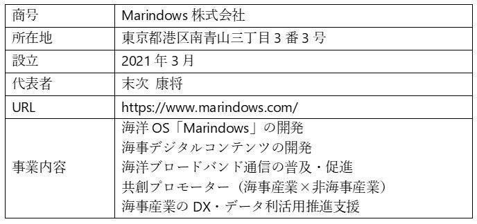 Marindows社は、電気推進(EV)船の開発事業を行っている株式会社e5ラボ(以下「e5ラボ」)により2021年3月に設立されました。「情報通信革命の力で海事産業を支え、サステナブルで魅力的な『海』の未来をつくる。」をOur Purpose(私たちの存在意義)に掲げ、同社が開発・提供する海洋OS「Marindows」をプラットフォームに、さまざまなアプリケーションの提供を通じて内航船員の働き方改革への対応や高齢化問題の解決、労務環境の改善に取り組んでいます。また、今後サービス提供開始予定の海上ブロードバンド通信を普及・利用促進させて、リアルタイムでの船陸間通信や船員支援などを通じた安全運航の向上も目指しています。