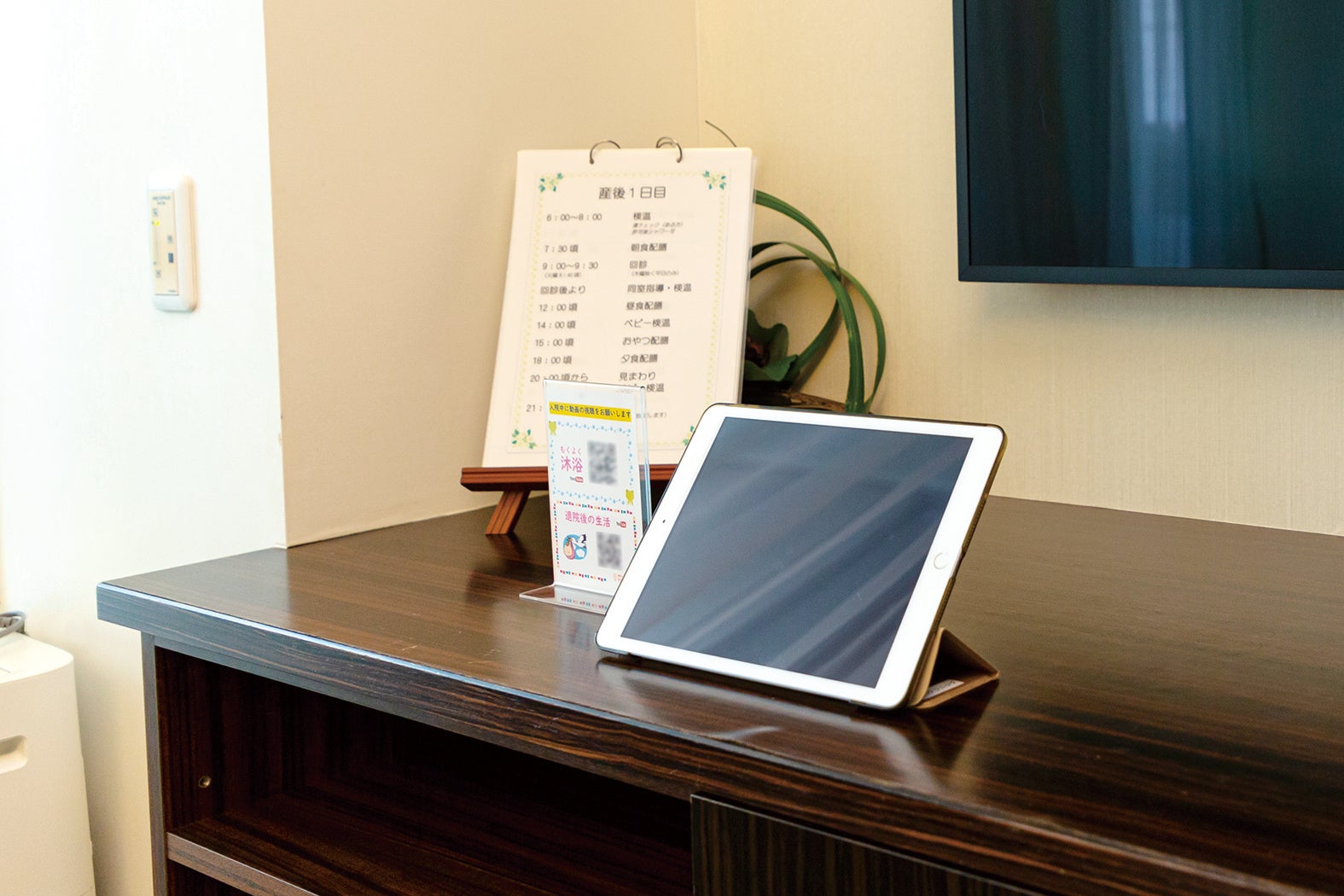 「CLOMO SecuredDocs」を活用し、施設案内や食事メニューのほか、赤ちゃんやお母さん自身のケアの方法など、それまで個室備えつけのファイルに綴じていた案内事項をiPadに配信しました。部屋にいながら手軽に閲覧できるようになったことで、患者は自身の体調に合わせて、見たい情報にいつでもアクセスできるようになりました。動画は患者にも好評で、例えば赤ちゃんの沐浴など、1回の指導だけでは手順が覚えられないものは、動画があることで予習復習に使うことができます。
