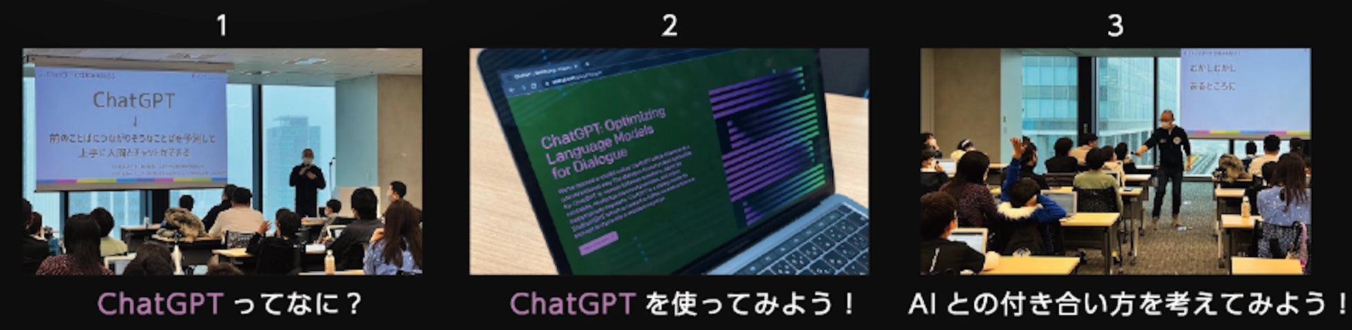 | 内容 | ChatGPTを体験しAIとの付き合いかたを考えるワークショップ 1.ChatGPTってなに? 2.ChatGPTを使ってみよう 3.ChatGPTの仕組みを知ろう 4.ChatGPTの使い道を考えてみよう |
