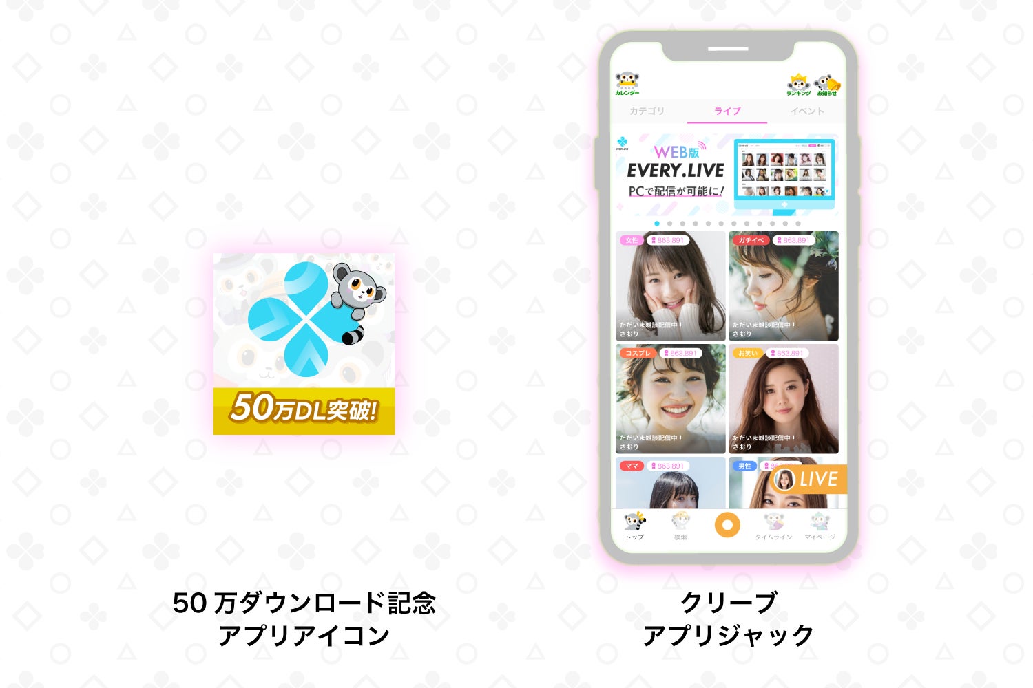 また、everylive公式キャラクターエブリフレンズのクリーブによるアプリジャックを同時展開いたします。