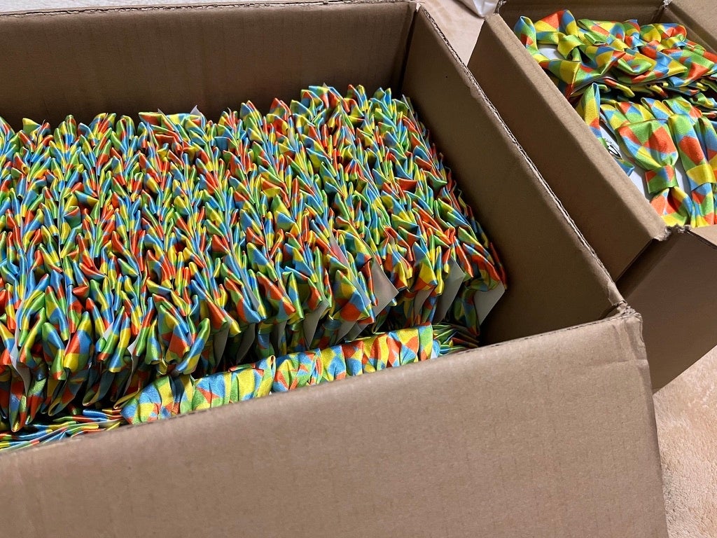 飲食店で使用されているリボンは、福祉作業所の利用者によって作成されています。活動に取り組む飲食店が増えることで、リボンの作成個数も増え、障害者雇用にもつながります。