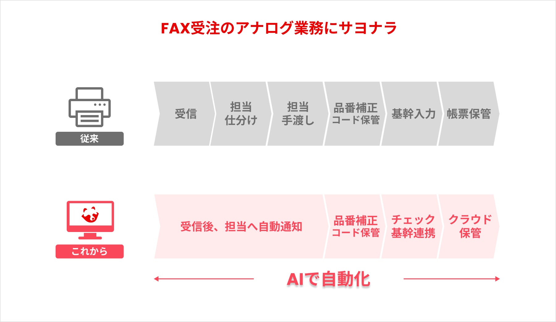 こうした課題に対して、当社は「FAX AI-OCR」を提供し、受注業務の自動化を提案いたします。