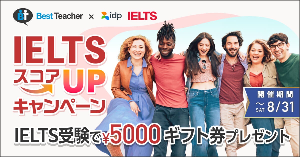 「書いて、話す」オンライン英会話「ベストティーチャー」を運営する株式会社ベストティーチャー(本社:東京都渋谷区、代表取締役社長:高宮敏郎)は、留学や就職など海外での活躍を目指す皆さまを応援するため、2024年6月1日(土)より「IELTSスコアUPキャンペーン」をIDP Education Japanと共催いたします。