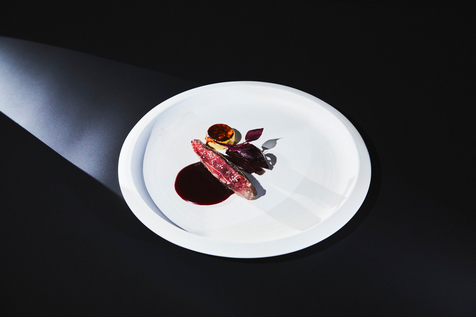 ・銀の鴨のロースト、ビーツと木苺のソース フォアグラのブリュレ