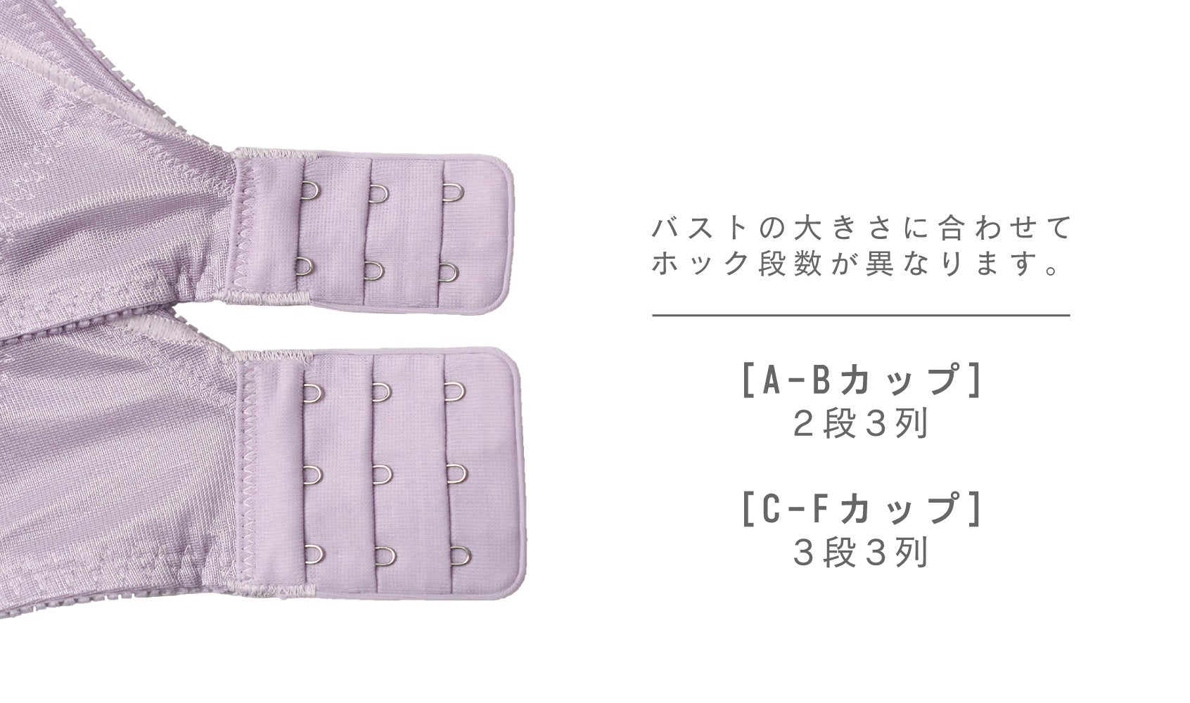 商品開発段階にはグラマーサイズのプロのモデルさんにも着け心地をヒアリング。ワイヤー等のくいこみが無く、ストレスが無く着用できる」「デザインがとてもかわいい」「脇高だけど変な圧迫感がない」と着用感や機能性の良さの感想を頂きました。他にも「下垂、はみ肉、胸の浮きなど、年齢とともに気になる悩みも、しっかりとバストを包み込んでくれる感じがありました。つけ心地もよく、ワイヤーもノンストレスですっきりとしたデザインがすてきでした。 肩紐も太さがあるので、肩紐ずれしにくいのがうれしいポイント。3段ホックでも安定感があったので良かったです」との声を頂いています。グラマーフィットブラは、ありのままの自分をもっと好きになれる、そして気持ちをポジティブにしてくれるブラです。