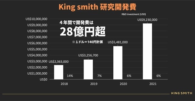 King smithフィットネス製品の開発費は2018年~2015年までで28億円を超えており、今回の新型G1ランニングマシンは、King smith社のこれまでの開発技術を駆使した集大成とも言えるKing smithブランド史上最高傑作となりました。