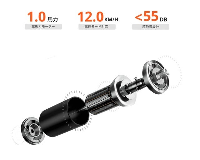 新型G1ランニングマシンには、最先端のパワフルかつ静音モーターが搭載されております。通常ランニング時(8km/h)のモーター音は50.9デシベルです。これは、人の話し声よりも小さな音、静かなオフィスと同等レベルとなります。