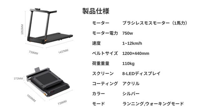 より本格的で強度の高いランニングがお家でできるよう、ジムと同等速度の12km/hまで対応してます。(通常使用は5〜8km/h程度)