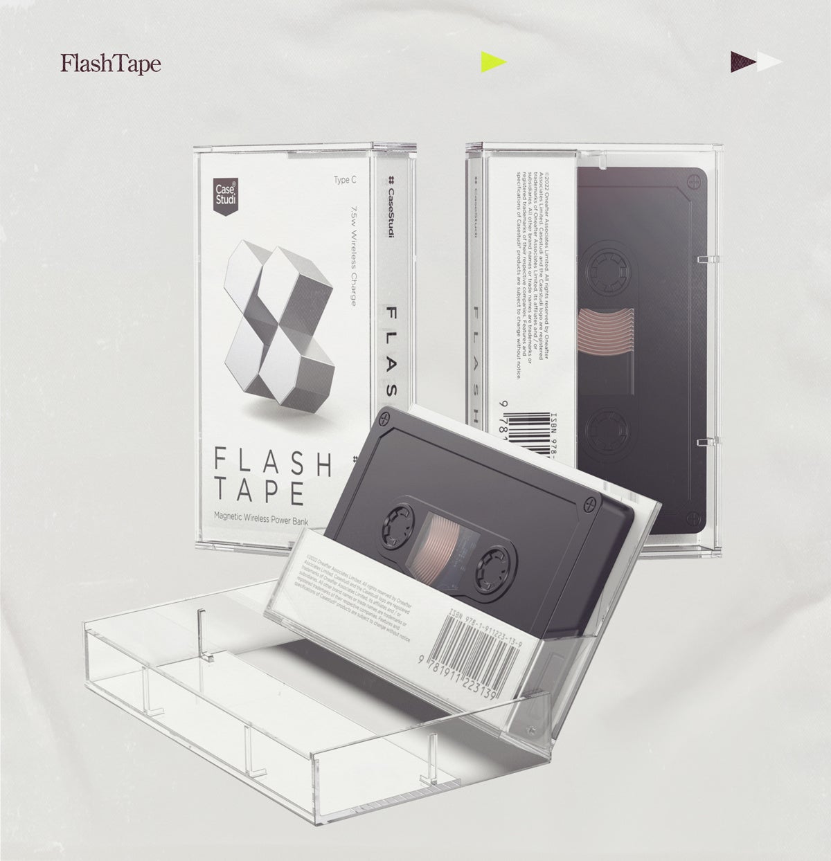 • レトロなカセットテープデザイン:FlashTapeは、懐かしいカセットテープのデザインに最新技術を融合。日常を彩るスタイリッシュなアイテムとして、持ち歩くことが楽しみになります。