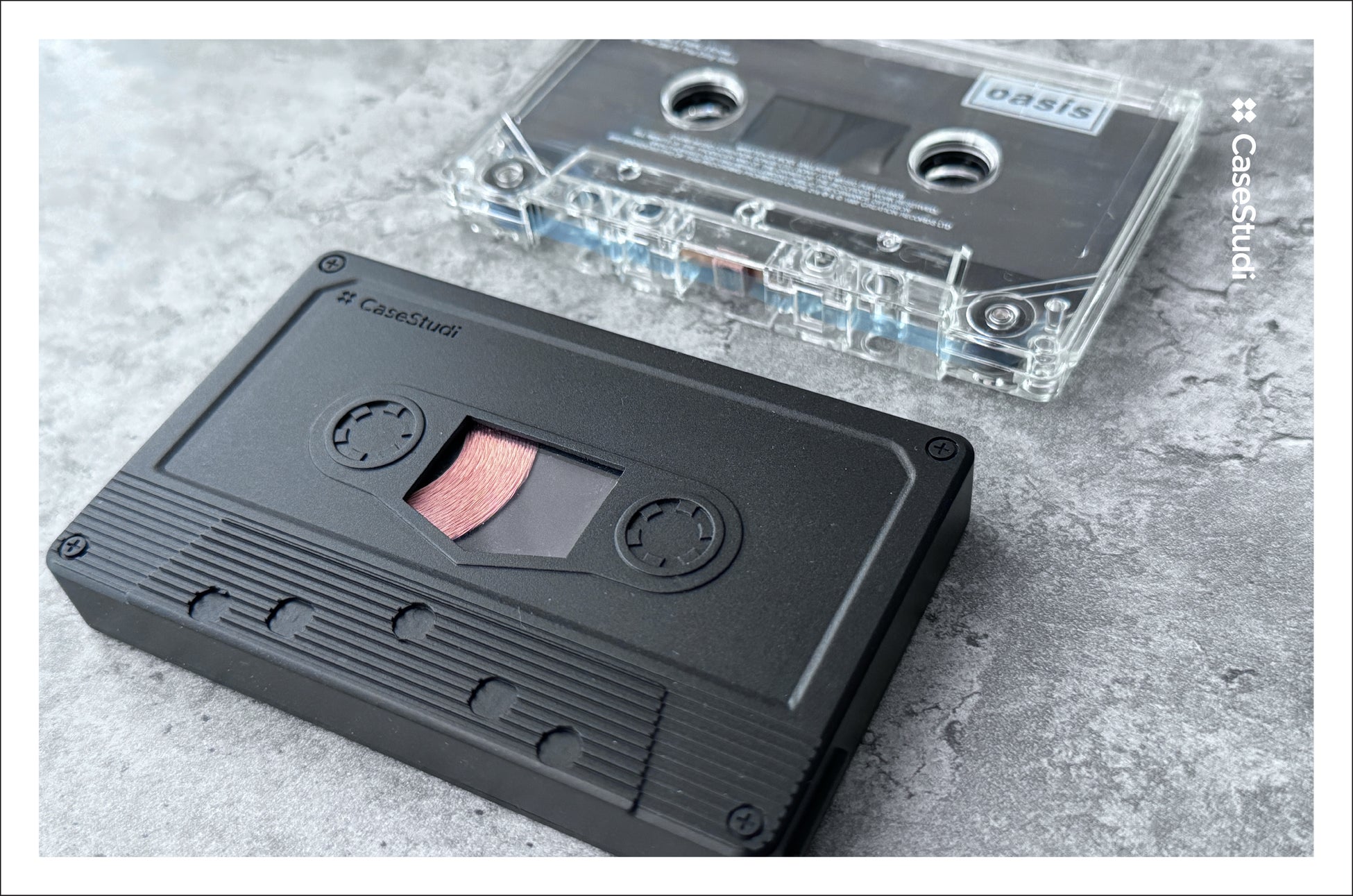• こだわりの本物そっくりなカセットテープケース:FlashTapeには、まるで本物のカセットテープを収納するような専用ケースが付属。ディテールにまでこだわったケースが、持ち運びの楽しさを一層引き立てます。