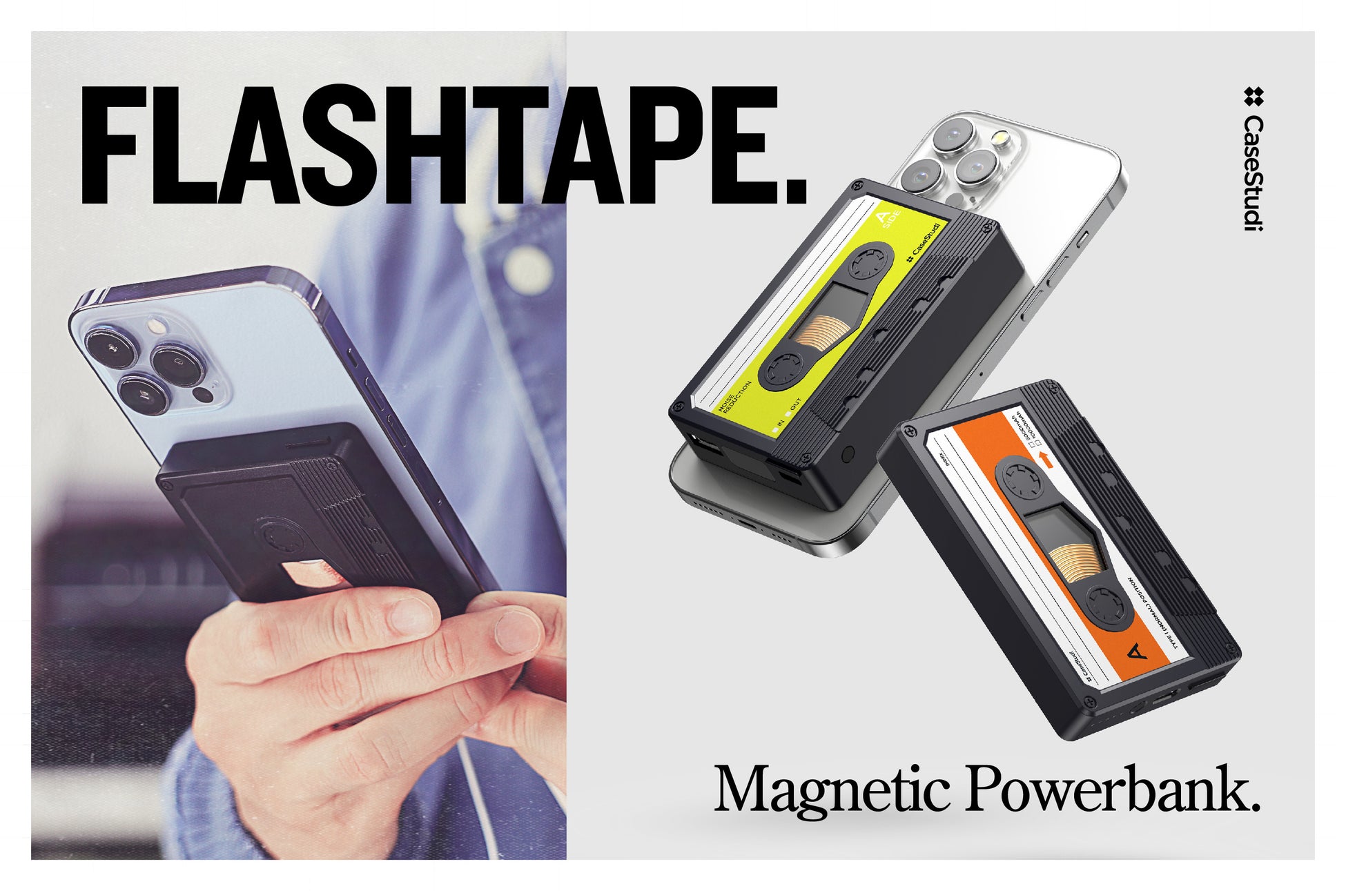 「FlashTape」は、クラシックなカセットテープのデザインに、現代の最先端テクノロジーを詰め込んだユニークなモバイルバッテリーです。若者にとっては斬新であり、カセットテープ世代には懐かしさを呼び起こすデザインが魅力です。