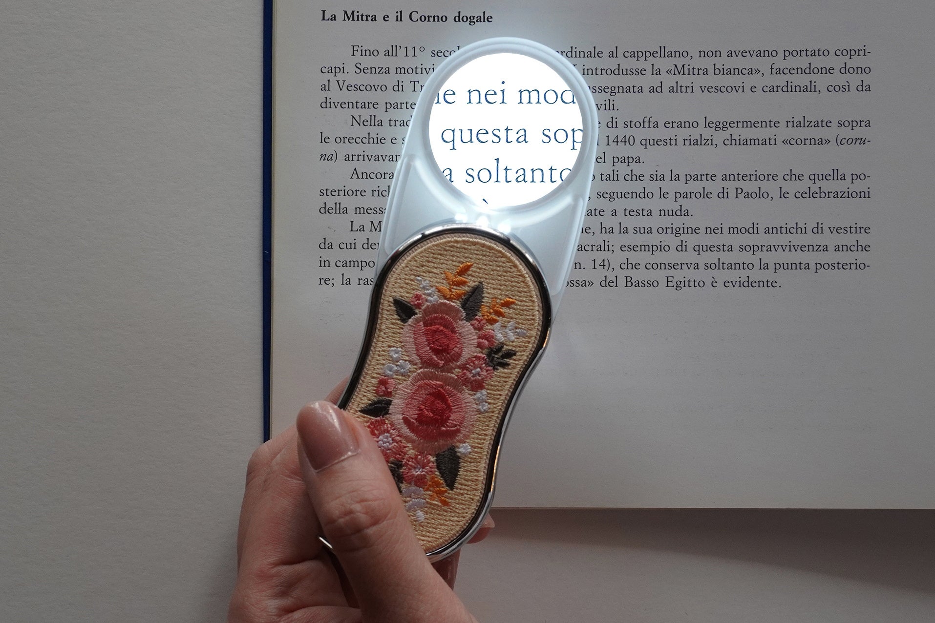 暗いところでも文字が読める。もしもの時、懐中電灯になる。便利で可愛いルーペを大切な人へ。