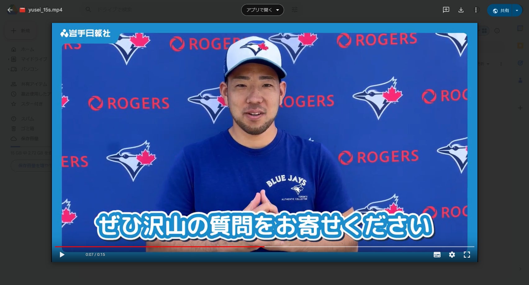 菊池雄星投手のメッセージ動画はこちらから→https://youtu.be/4E8vnNyPPA4