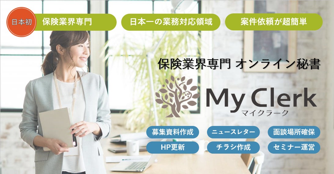 この度、保険業界向けオンラインアシスタント秘書サービス「MyClerk」を提供する、株式会社マイクラークが日々の営業活動に悩む保険営業マン向けに営業活動支援として無料オンラインセミナー各種を5月に開催。