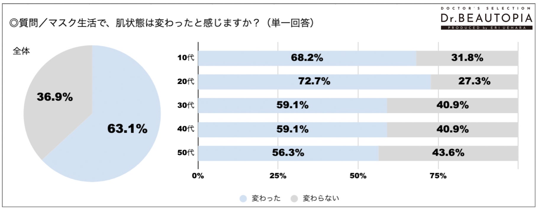 - ③【マスク生活の肌状態】6割以上(63.1%)が「変わった」と回答