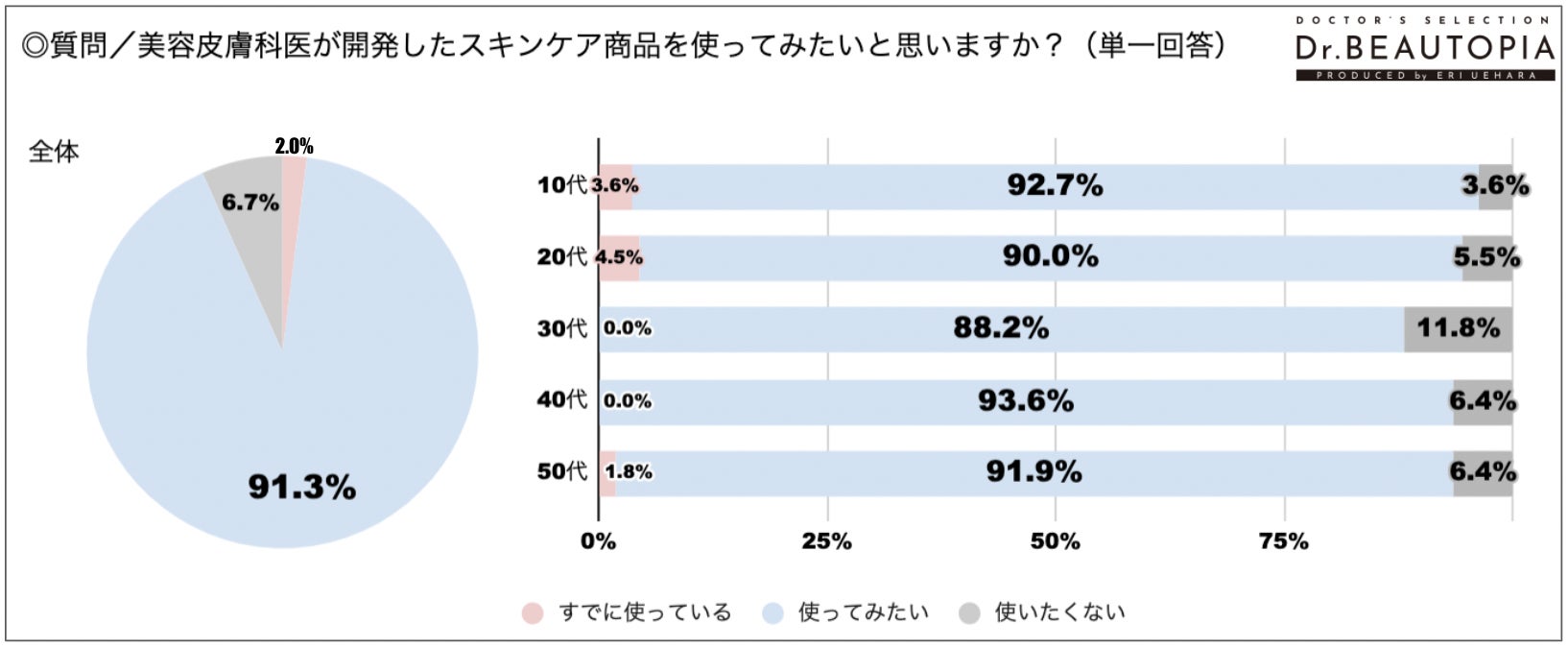 - ⑩【美容皮膚科医・開発のスキンケア商品】9割以上(91.3%)が使ってみたいと回答