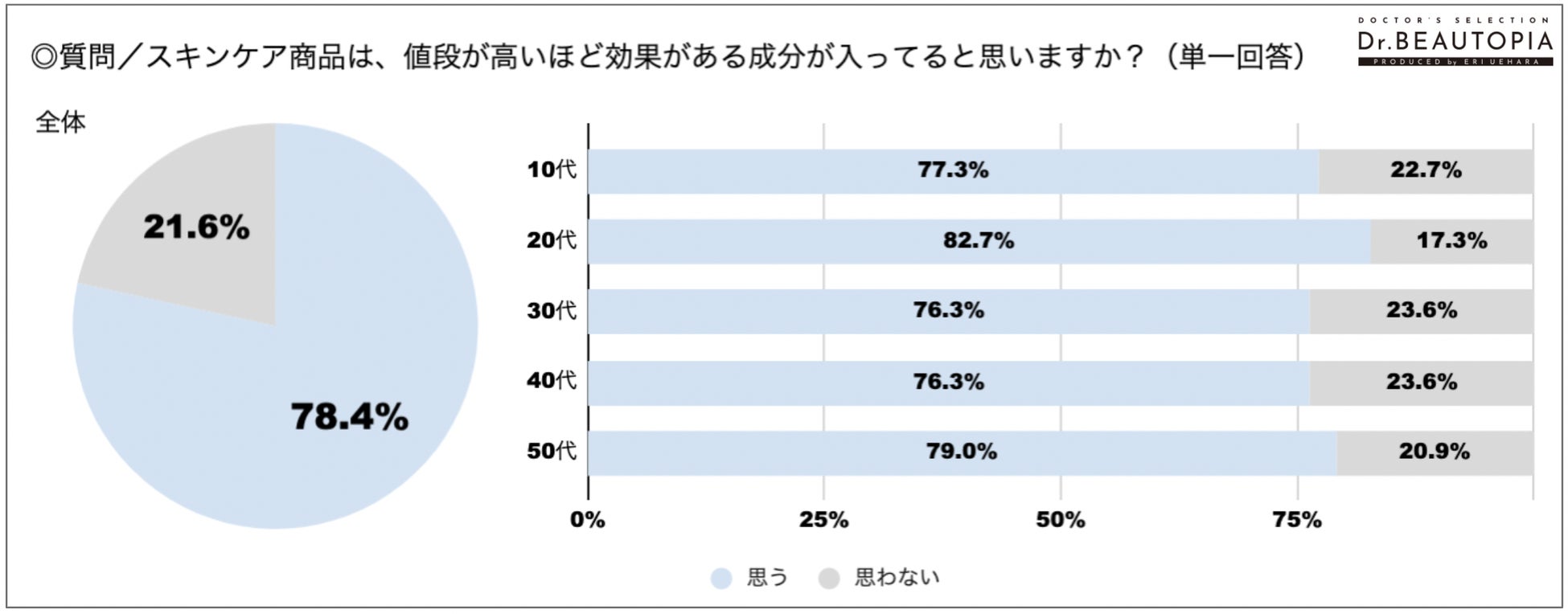 ⑥【高値なスキンケア商品、効果ある成分が入っていると思う?】約8割(78.4%)「あると思う」と回答