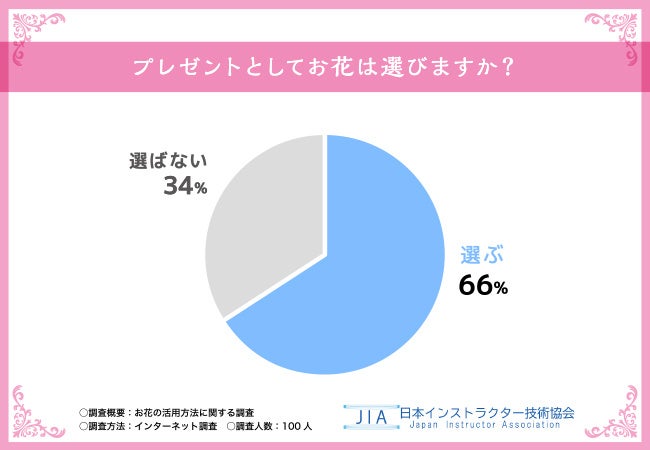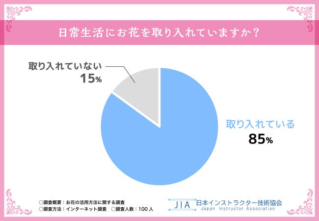 そこで今回、花屋コーディネーターの資格検定試験(https://www.jpinstructor.org/shikaku/flower/)を主催する日本インストラクター技術協会(https://www.jpinstructor.org/)は、全国の男女100名を対象に「お花の活用法」に関するアンケートを実施しました。