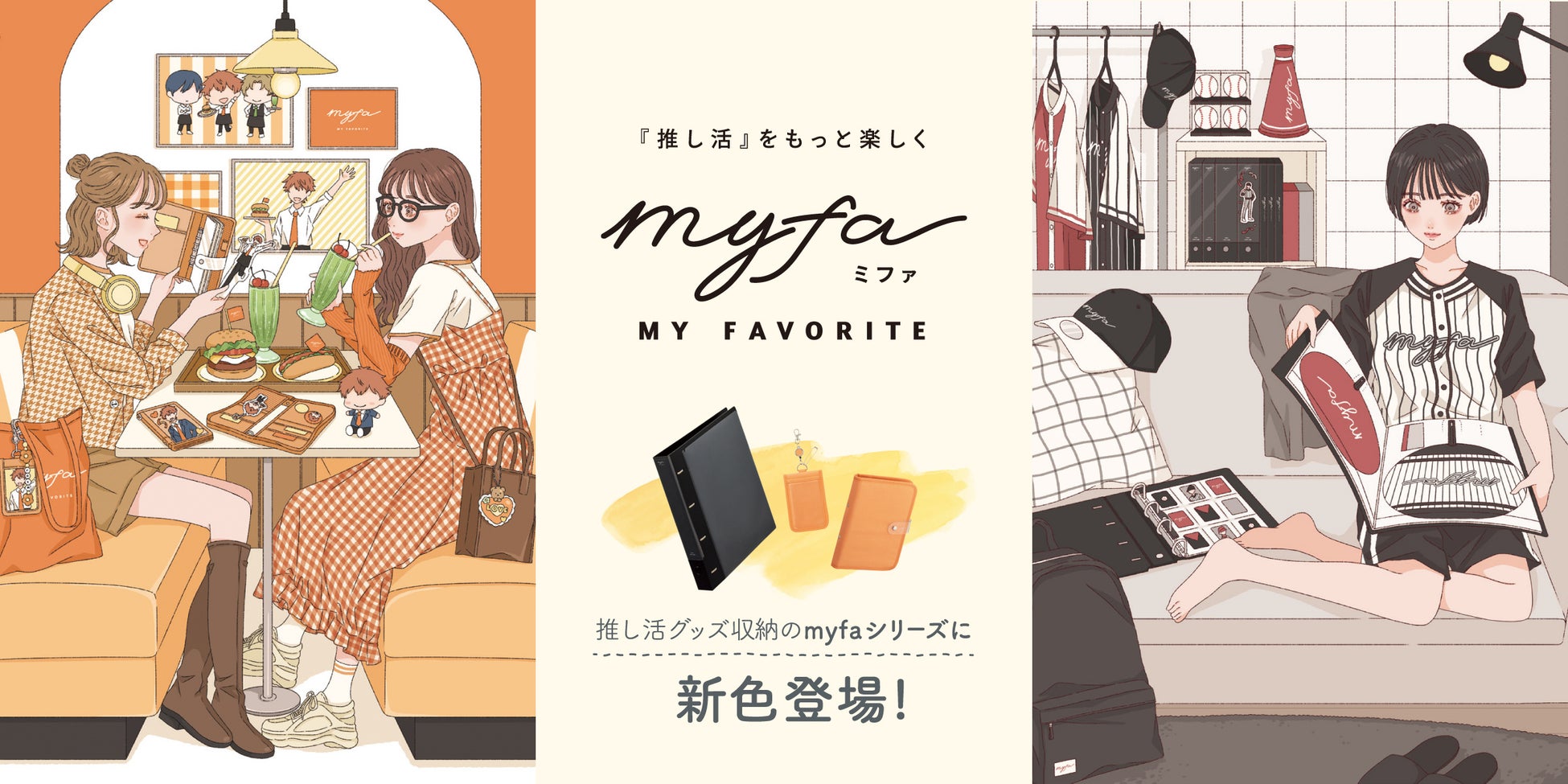 2023年1月に発売を開始した『myfa(ミファ)』シリーズは発売半年で累計38万3,000個を超える出荷数を記録し、推し活をされている方を中心に大変ご好評いただいております。そこで、縫製品の4品番に推し色として人気の高いアプリコットオレンジ、ファイル4品番にインテリアに馴染むジェットブラックを追加し、発売致します。