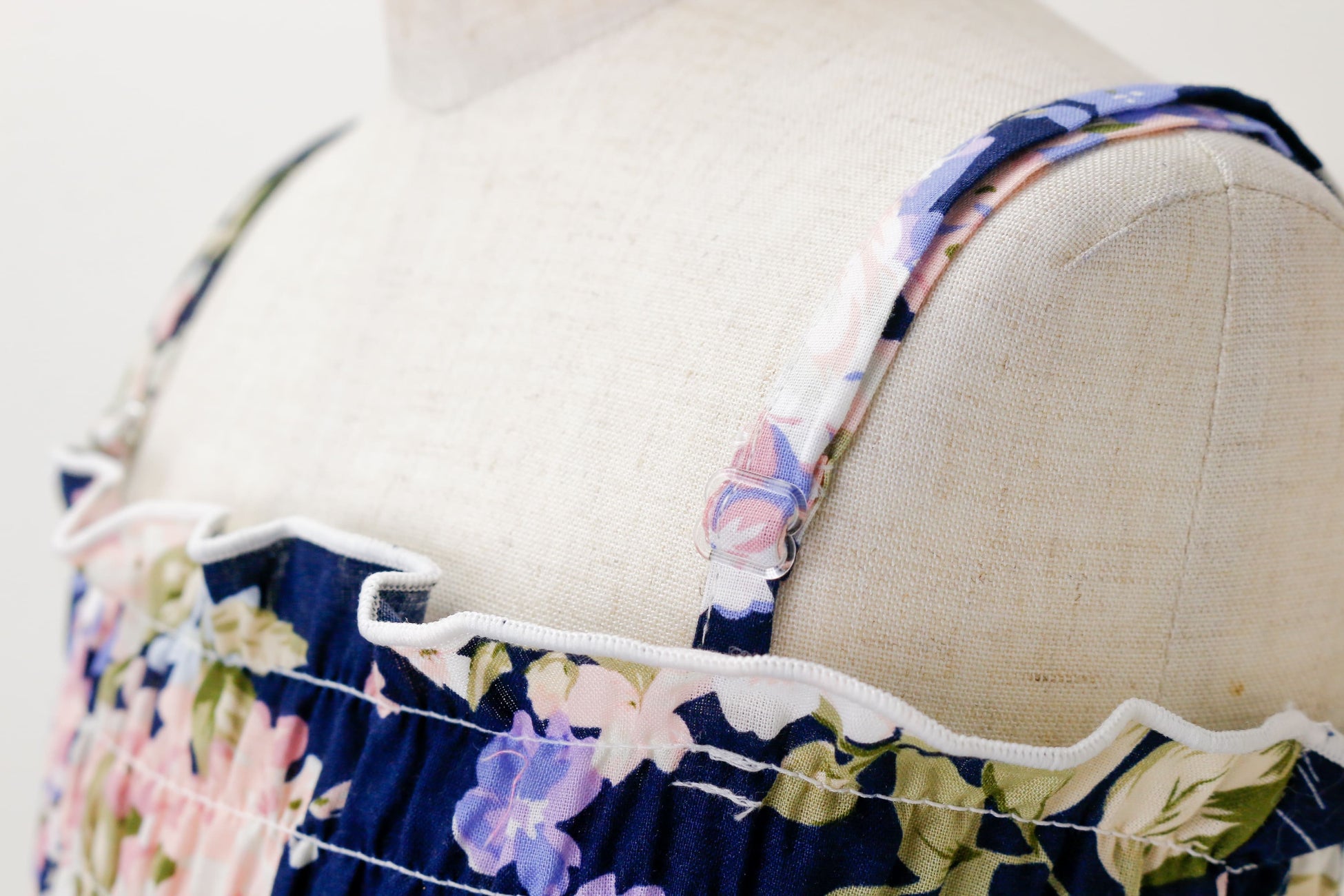 シャーリングの段を増やし、浴衣単体での着用がもっとかわいくなるようデザインを見直しました。
