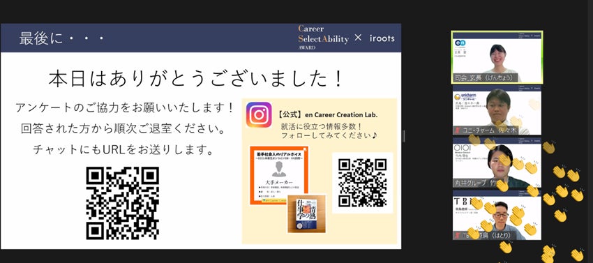 計1時間30分のイベントでしたが、100名以上に参加いただき、最後の質疑応答まで盛り上がりました。登壇者の皆様の熱いお話に学生のみなさんからもたくさんリアクションをいただきました。
