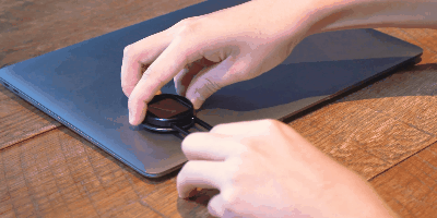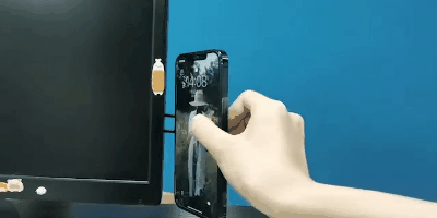 マウントの取付位置をモニター背面の上部端に貼り付ければ、縦・横どちらでも取り付けOK。リバーシブルに取り付けれるから、スマホをそのままひっくり返してSNSチェックも容易に。