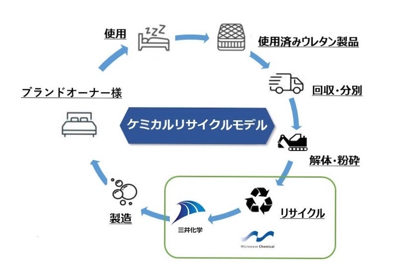 三井化学株式会社(東京都港区、代表取締役社長:橋本修、以下 三井化学)及びマイクロ波化学株式会社(大阪府吹田市、代表取締役社長:吉野巌、以下 マイクロ波化学)は、マイクロ波技術を用いて、マットレスなどに使用される軟質ポリウレタンフォームの廃材を分解し、直接原料にケミカルリサイクルする技術の実用化を目指した取り組みを開始しました。
