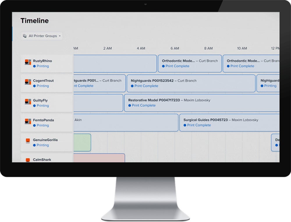Fleet Controlは、Formlabsの無料スライサーソフトPreFormとDashboardの機能拡張アドオンで、従来は各プリンタに直接送信する必要があった造形ファイルを、プリンタグループという仮想空間に送信することで、そのプリントに必要な消耗品がセットされたプリンタに自動でジョブを割り当てます。また、プリントジョブの順番変更やコピー、過去ジョブの再プリントもリモートで実施できます。