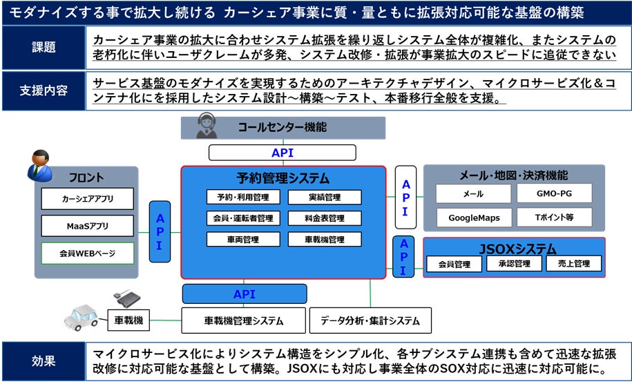 クラウドネイティブ、マイクロサービス、コンテナ等を採用した「カーシェアリング向け 予約管理システム」を構築。