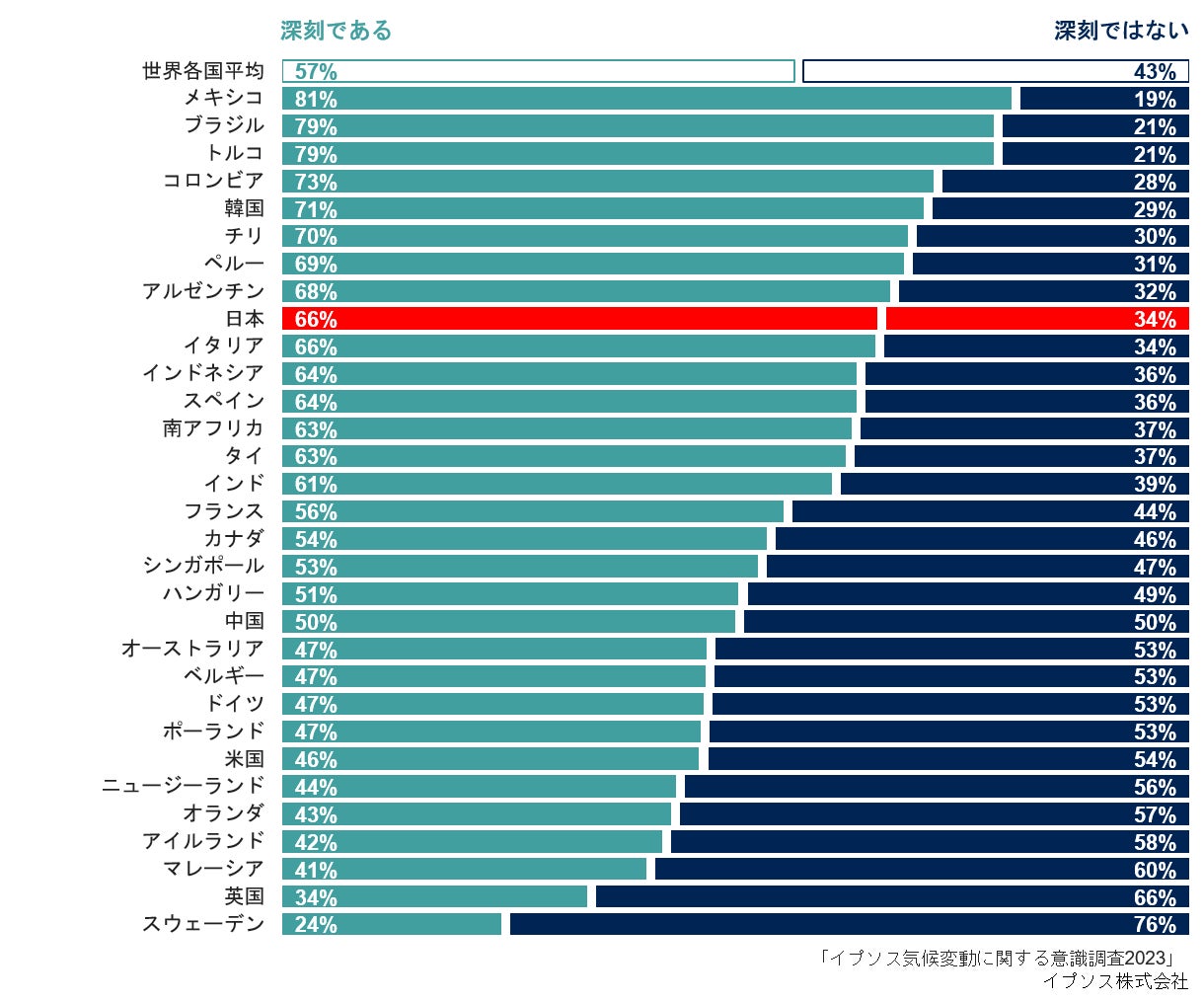 ⇒ 同設問に「深刻である」と答えた世界各国平均は57%。