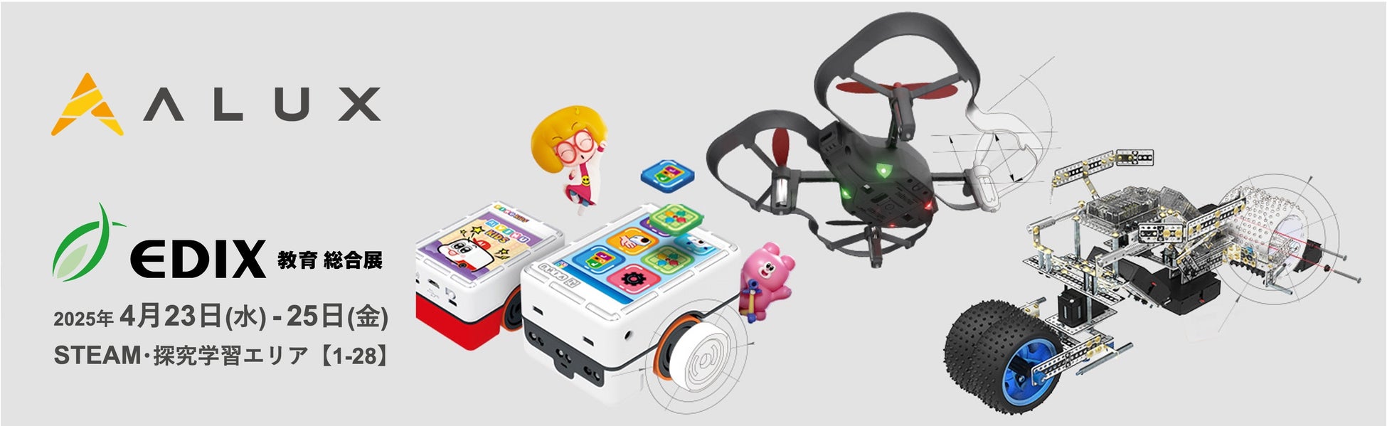 株式会社follow(本社:東京都新宿区、代表取締役:野々部 美里)は、2025年4月23日〜25日に開催される「EDIX(教育総合展)東京」への出展に際し、ALUX(エーラックス)ブランドのプログラミング教材をご来場者様限定で40%OFFの特別価格にてご提供いたします。ALUXは、豊富な搭載コンテンツや複数のプログラミング手法への対応により、年齢やスキルに応じた柔軟な学習を可能にする教材シリーズを提供しています。日本のSTEAM教育のさらなる発展に貢献すべく、より多くの教育機関や先生方に体験いただきたく、この度のキャンペーンを企画いたしました。ぜひ会場で、ALUXブランドのプログラミング教材を実際にお手に取ってご体験ください。