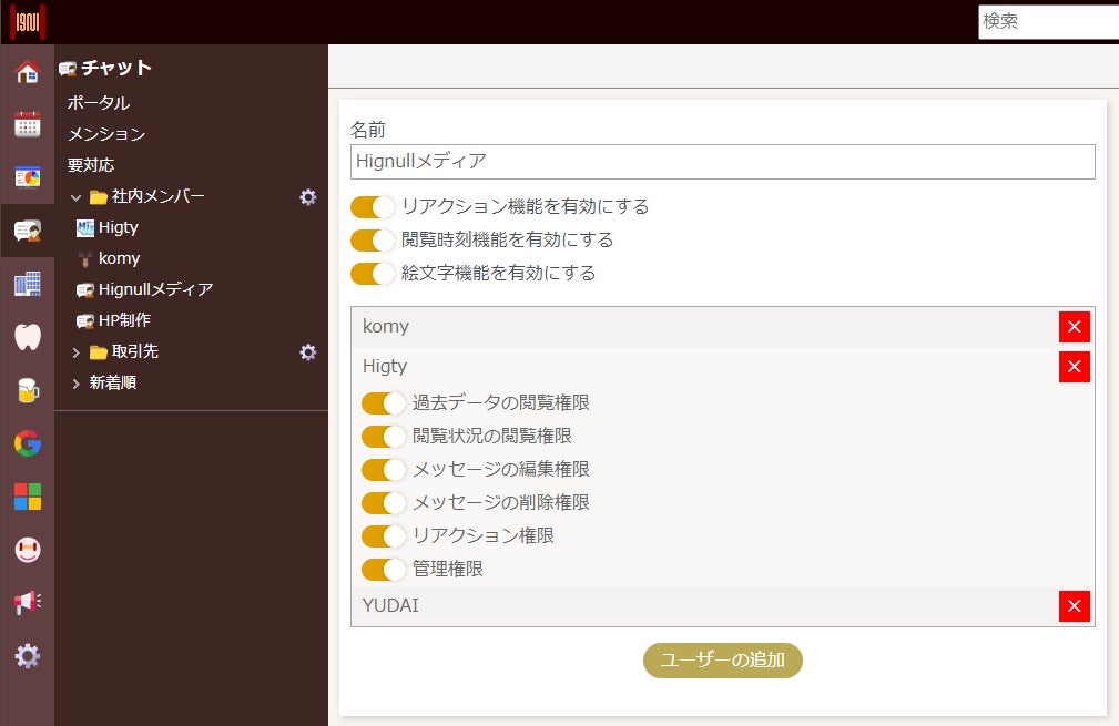 によって業務を標準化して漏れなく仕事を行えるようにする機能もあります。チャット機能の利用後にタスク管理も行いたい場合はHignullの設定の変更のみで簡単にタスク管理機能を組織に導入できます。