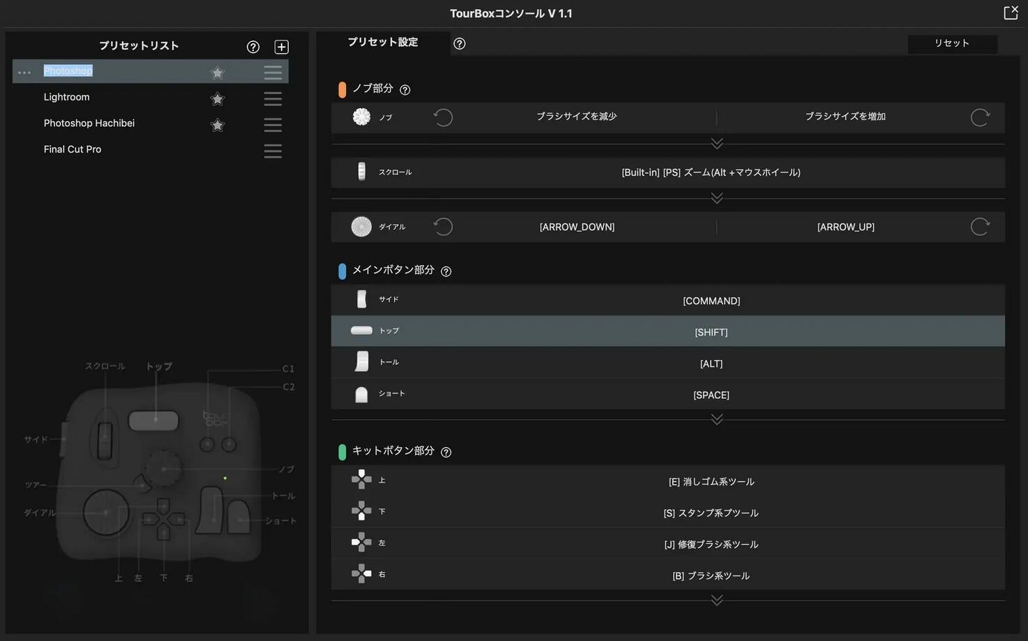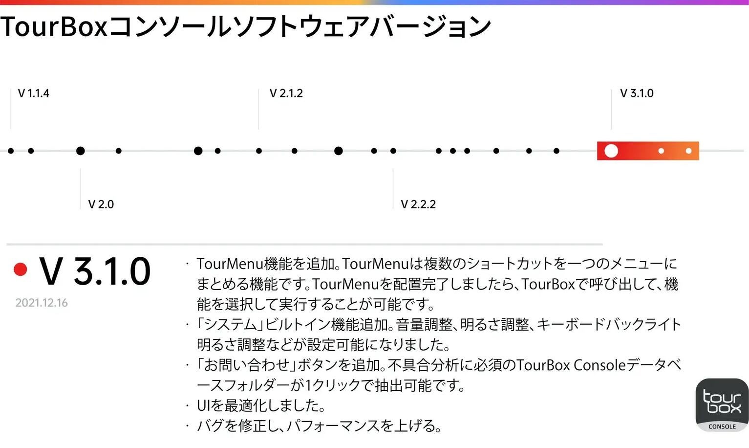 - TourBoxのコンソールソフトは常に進化し続けています