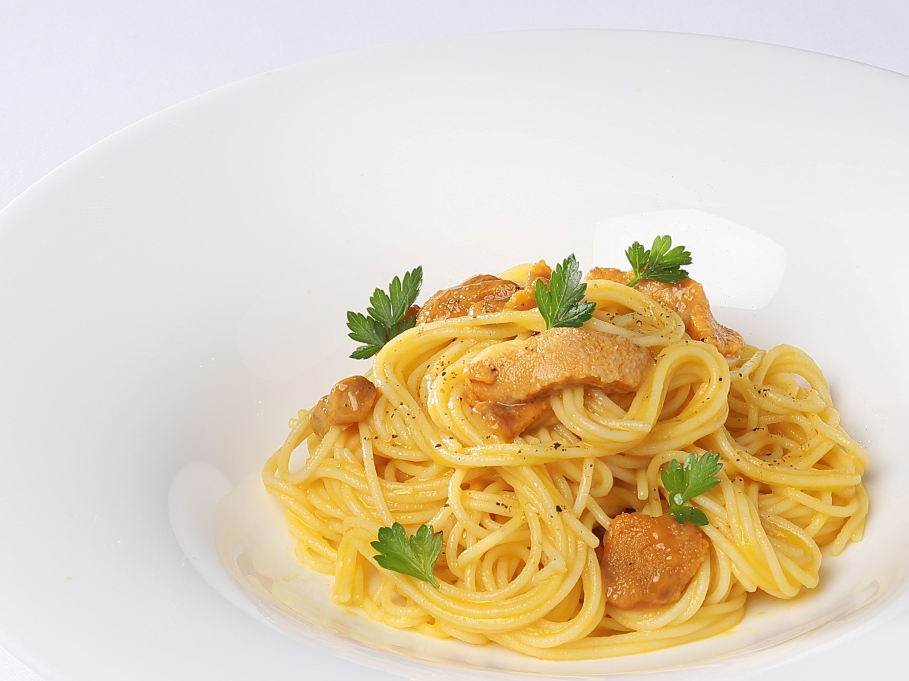 メニューの中でも、「ウニの冷製カッペリーニパスタ」は、暑い夏にお召し上がりいただきたい一品。冷水で冷やされパスタとウニのソースを絡ませ北海道産のウニをのせた一品は夏にぴったり。その他にも、「マグロのど肉のカラーピーマン詰め イタリアン魚醤のソース」では、旬のカラーピーマンの鮮やかな色目が目でも愉しめる。