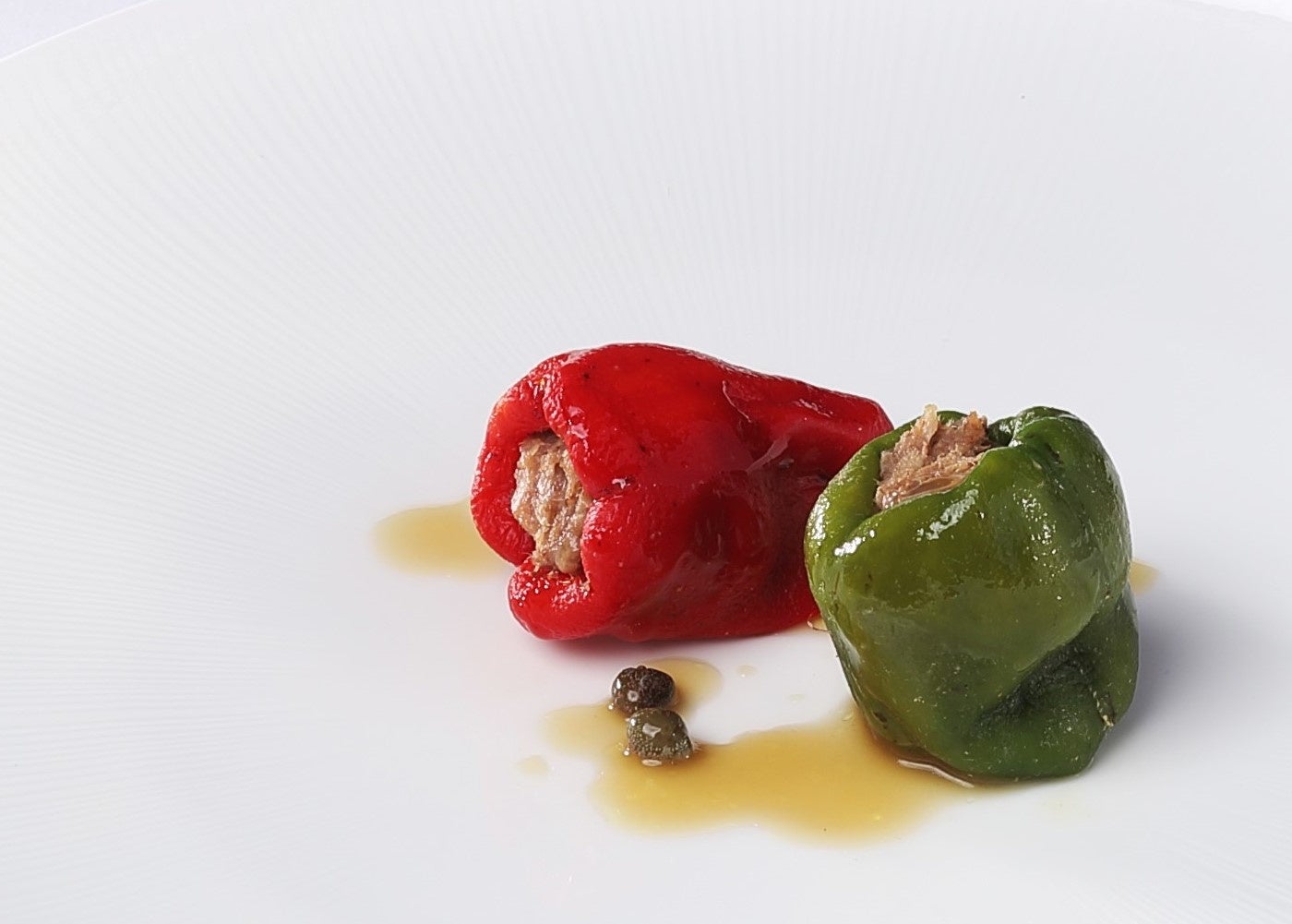 ・マグロのど肉のカラーピーマン詰め イタリアン魚醤のソース