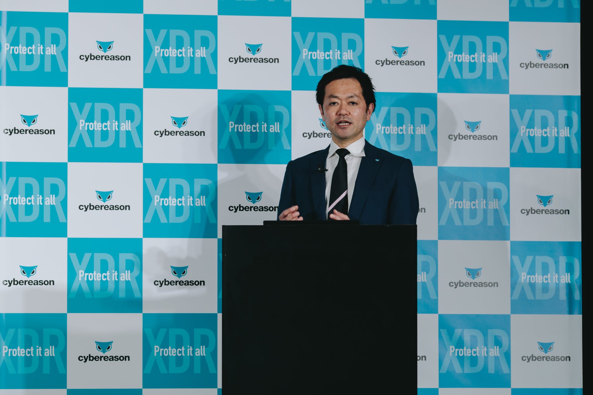 最後にサイバーリーズン・ジャパン株式会社 シニア・エグゼクティブ・バイスプレジデント 纐纈 昌嗣が「本市場での事業展開&パートナー戦略」について発表しました。